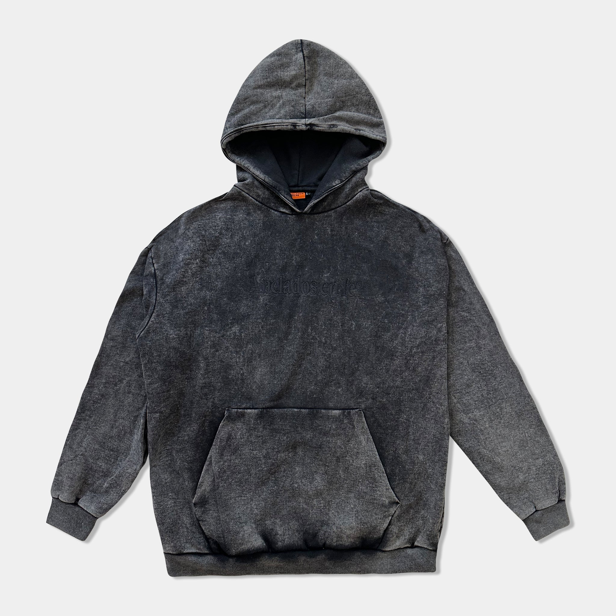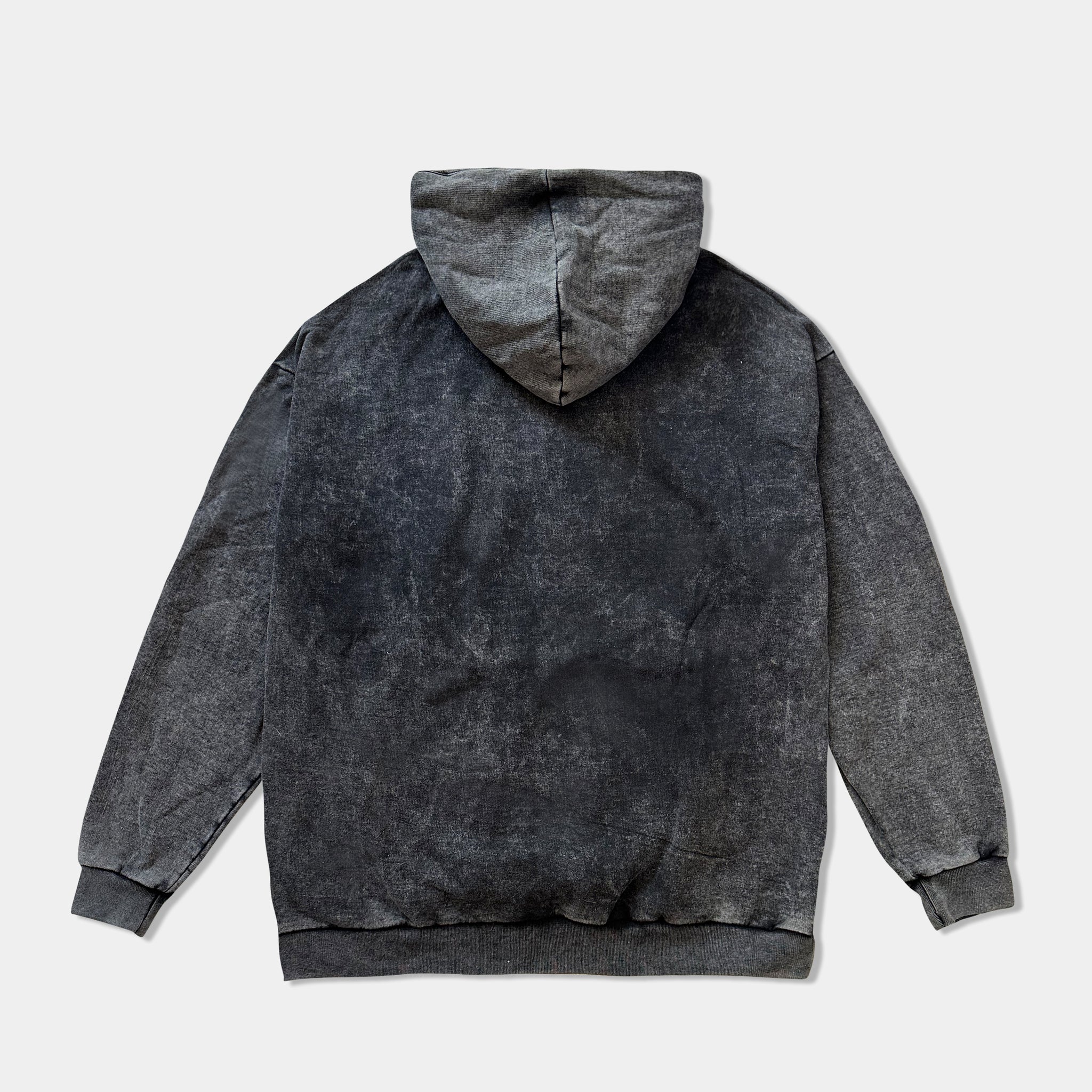 Polerón negro con proceso de gastado STONE WASH, arte bordado negro en el pecho. Calidad 80% Algodón 20% Polyester.