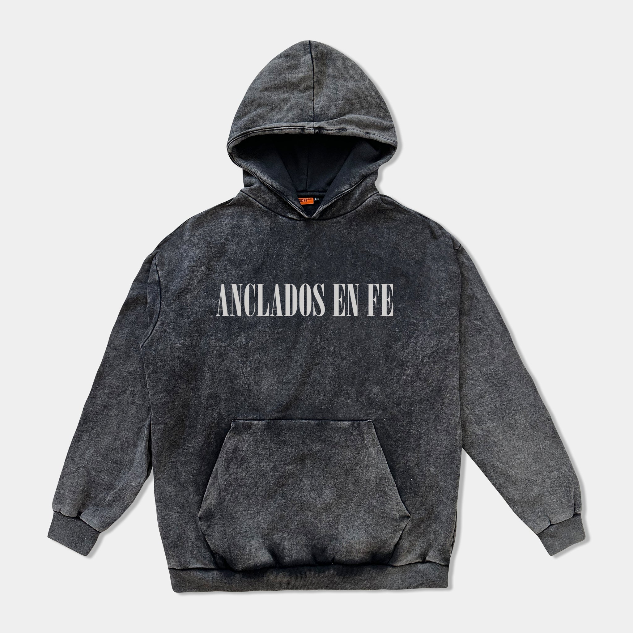 Polerón negro con proceso de gastado STONE WASH, artes estampados con serigrafía, en pecho y espalda. Calidad 80% Algodón 20% Polyester.