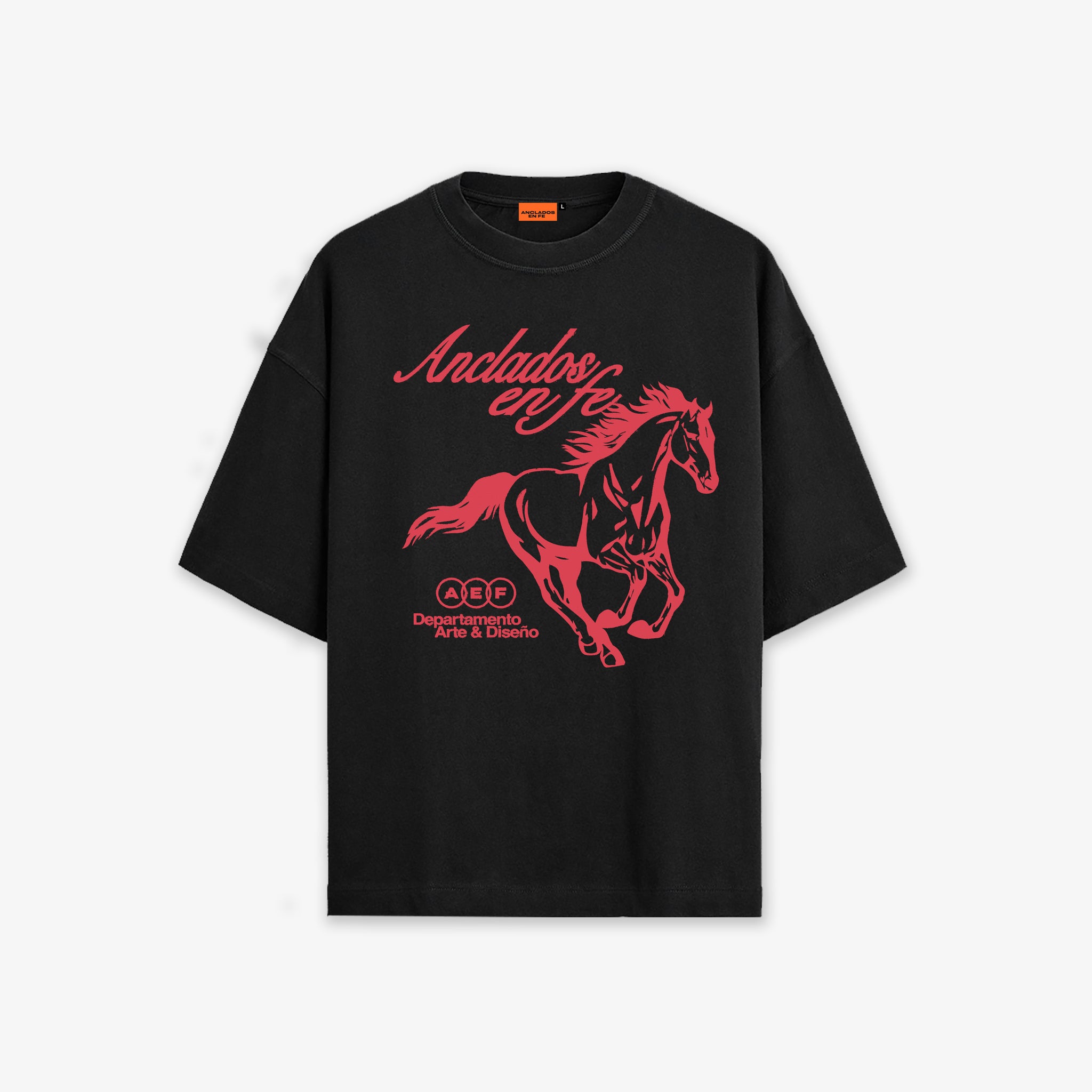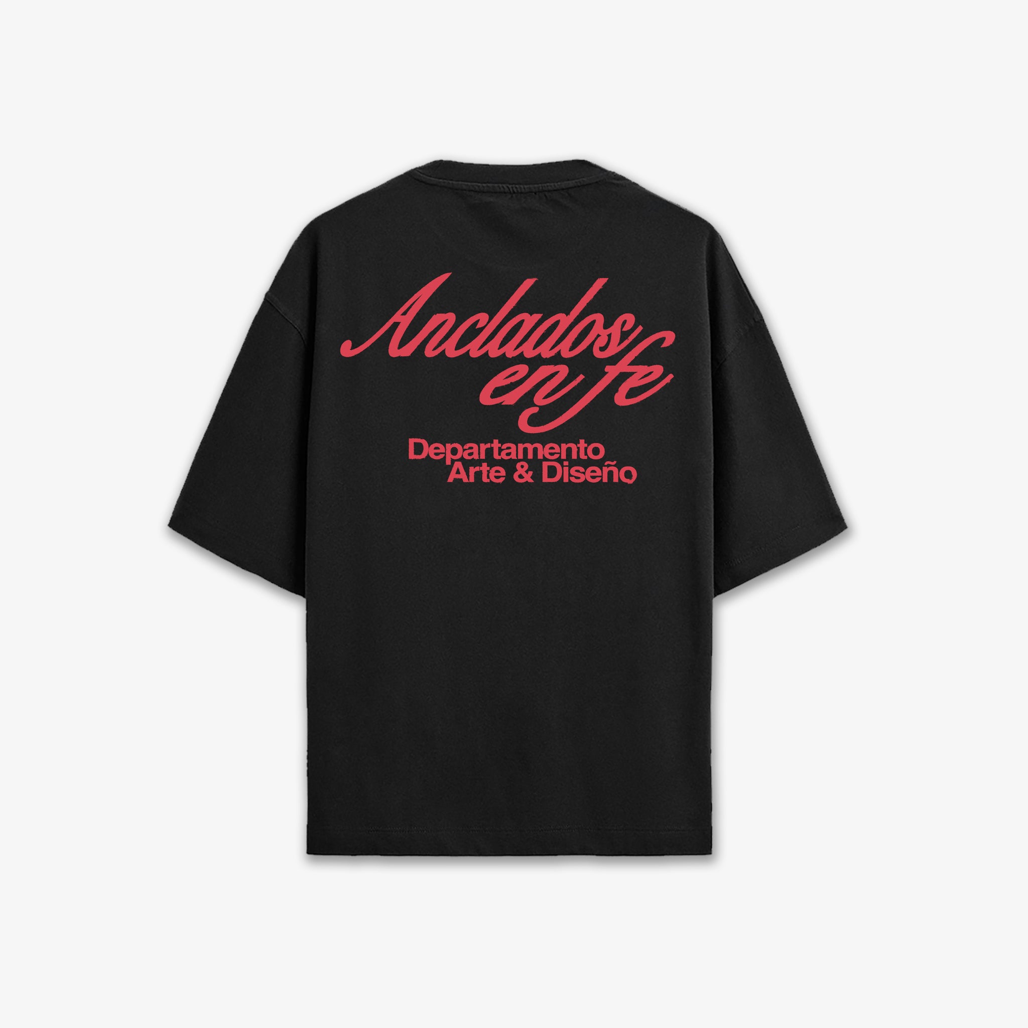 Polera negra corte Boxy Fit, confeccionada en jersey de algodón de 190 g/m², holgado para los lados y cómodo.